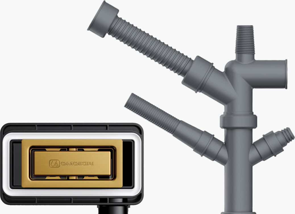 Универсальный перелив для моек Omoikiri OV-02 LG подходит к арматуре серии WK с прямоугольным переливом.