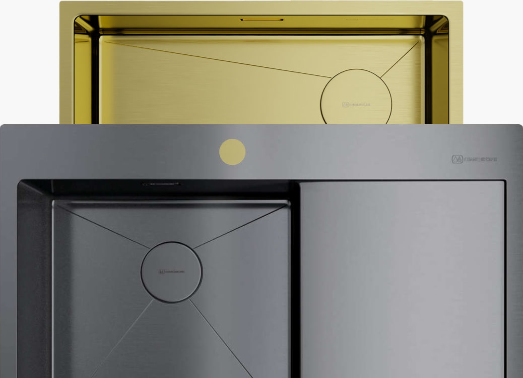 Качественная цельнотянутая нержавейка с PVD-покрытием, стильный воронёный цвет и удобная установка.
