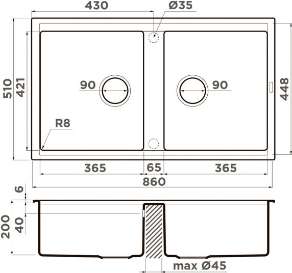Схема встраивания на русском языке для мойки Omoikiri Kitagawa 86-2 GB