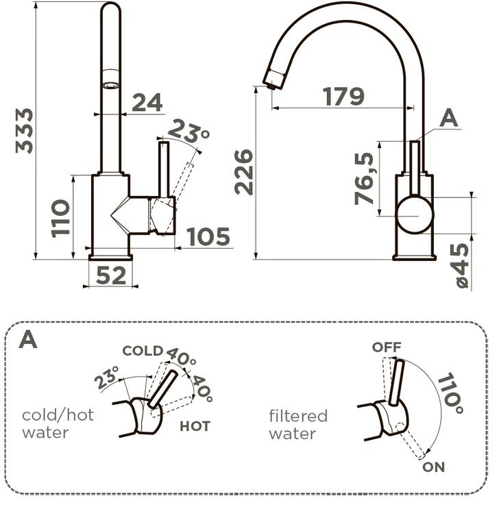 Схема встраивания на русском языке для смесителя Omoikiri Shinagawa 2 PLUS BE