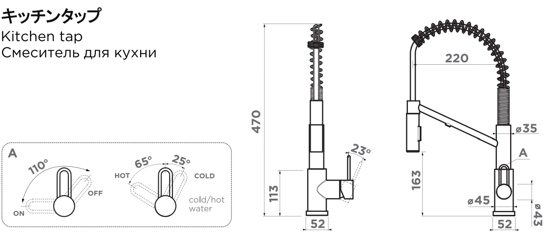 Схема встраивания на русском языке для смесителя Omoikiri MIKAWA 2 PLUS-SB GM