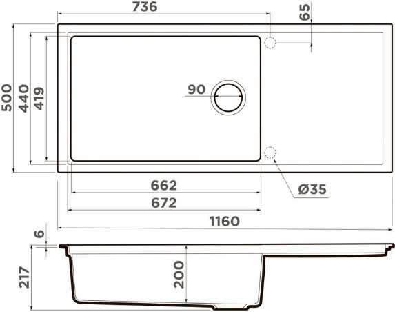 Схема встраивания на русском языке для мойки Omoikiri SINTESI 116 WG