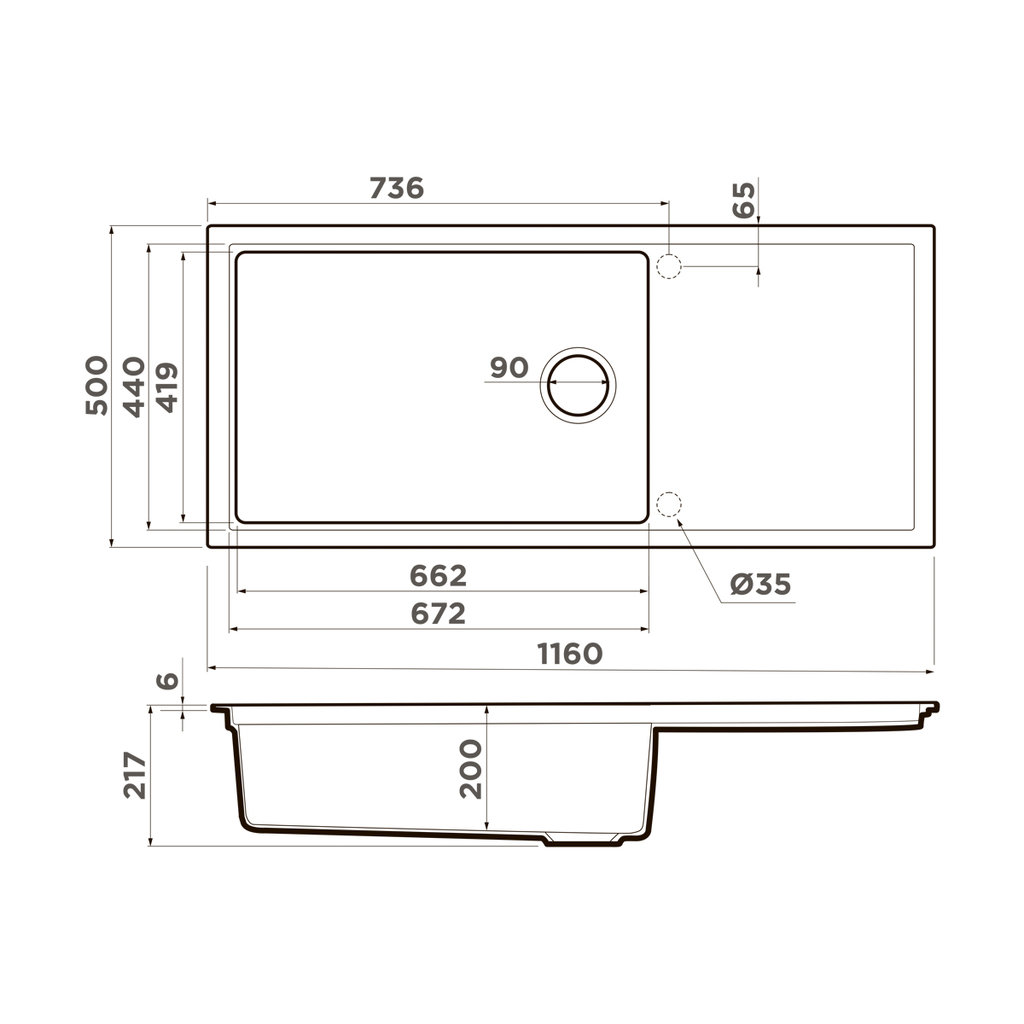Схема встраивания на русском языке для мойки Omoikiri SINTESI 116 GB