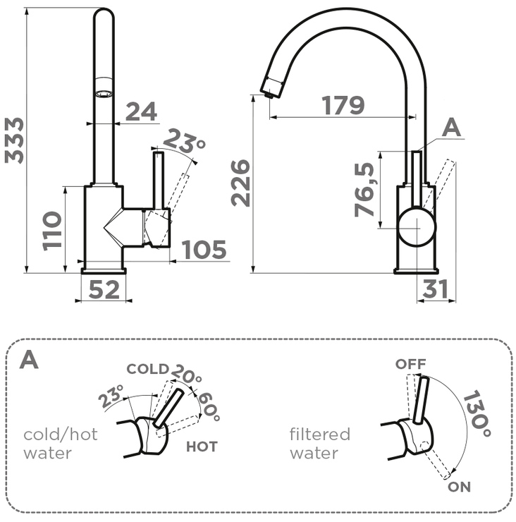 Схема встраивания на русском языке для смесителя Omoikiri Shinagawa 2 Plus-CA
