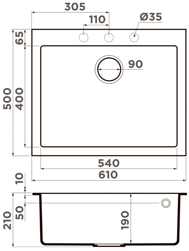 Схема встраивания на русском языке для мойки Omoikiri BOSEN 61A WH