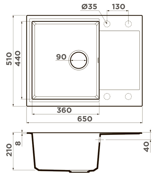 Схема встраивания на русском языке для мойки Omoikiri DAISEN 65T-WH