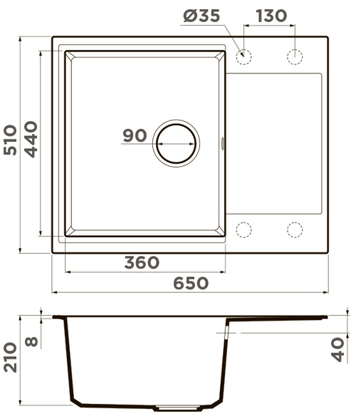 Схема встраивания на русском языке для мойки Omoikiri DAISEN 65T-SA
