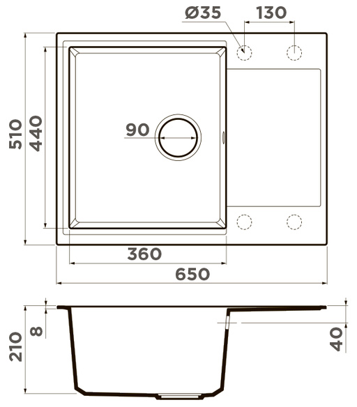 Схема встраивания на русском языке для мойки Omoikiri DAISEN 65T-BE