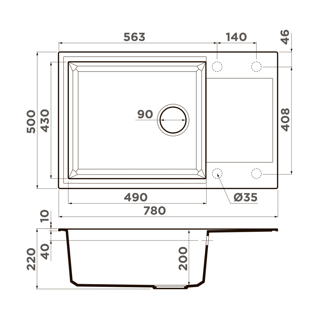 Схема встраивания 1 на русском языке для мойки Omoikiri SAKAIME 78-LB-ES