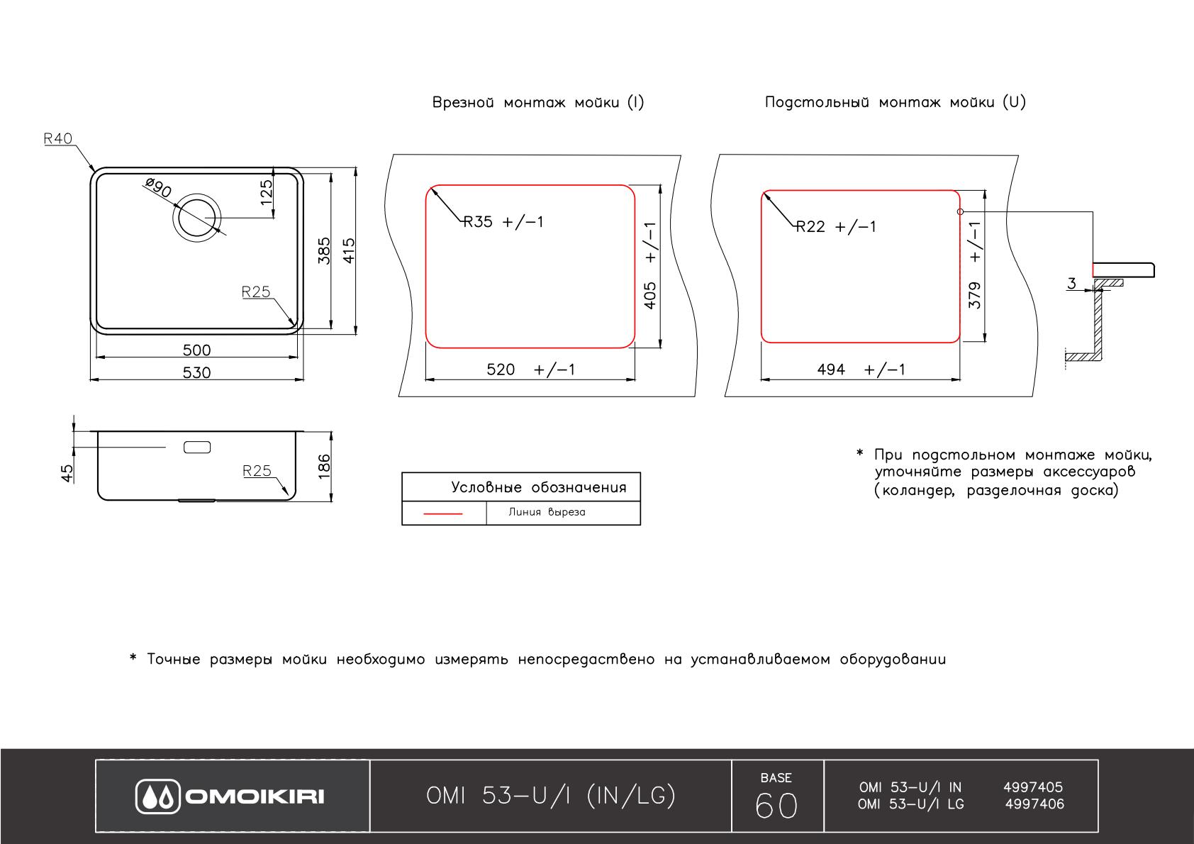 Схема встраивания 2 на русском языке для мойки Omoikiri OMI 53-U/I ULTRA-IN