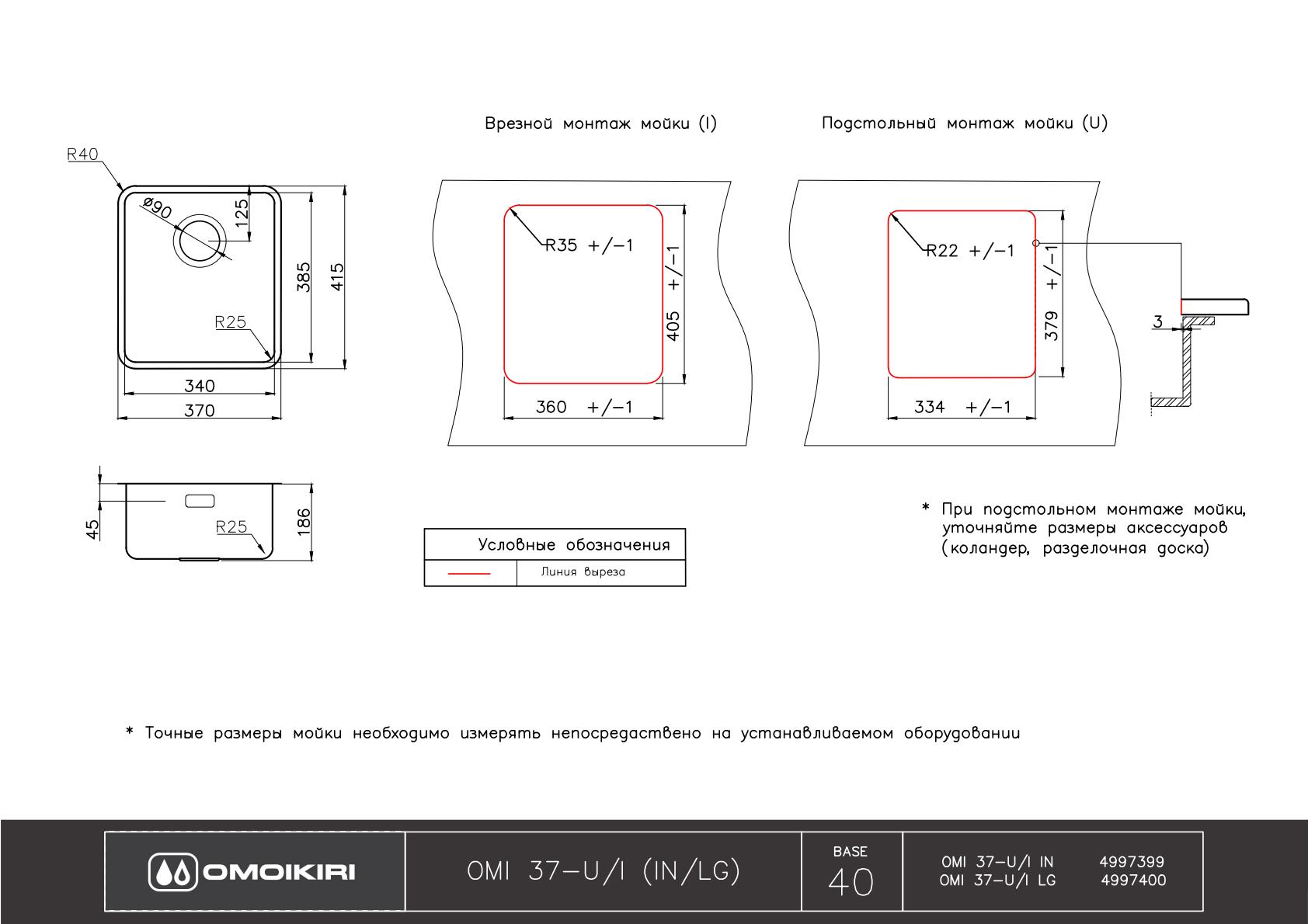 Схема встраивания 2 на русском языке для мойки Omoikiri OMI 37-U/I ULTRA-LG