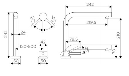 Схема встраивания на русском языке для смесителя Omoikiri NARA-LG