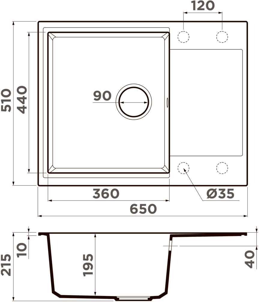 Схема встраивания на русском языке для мойки Omoikiri Daisen 65 WH