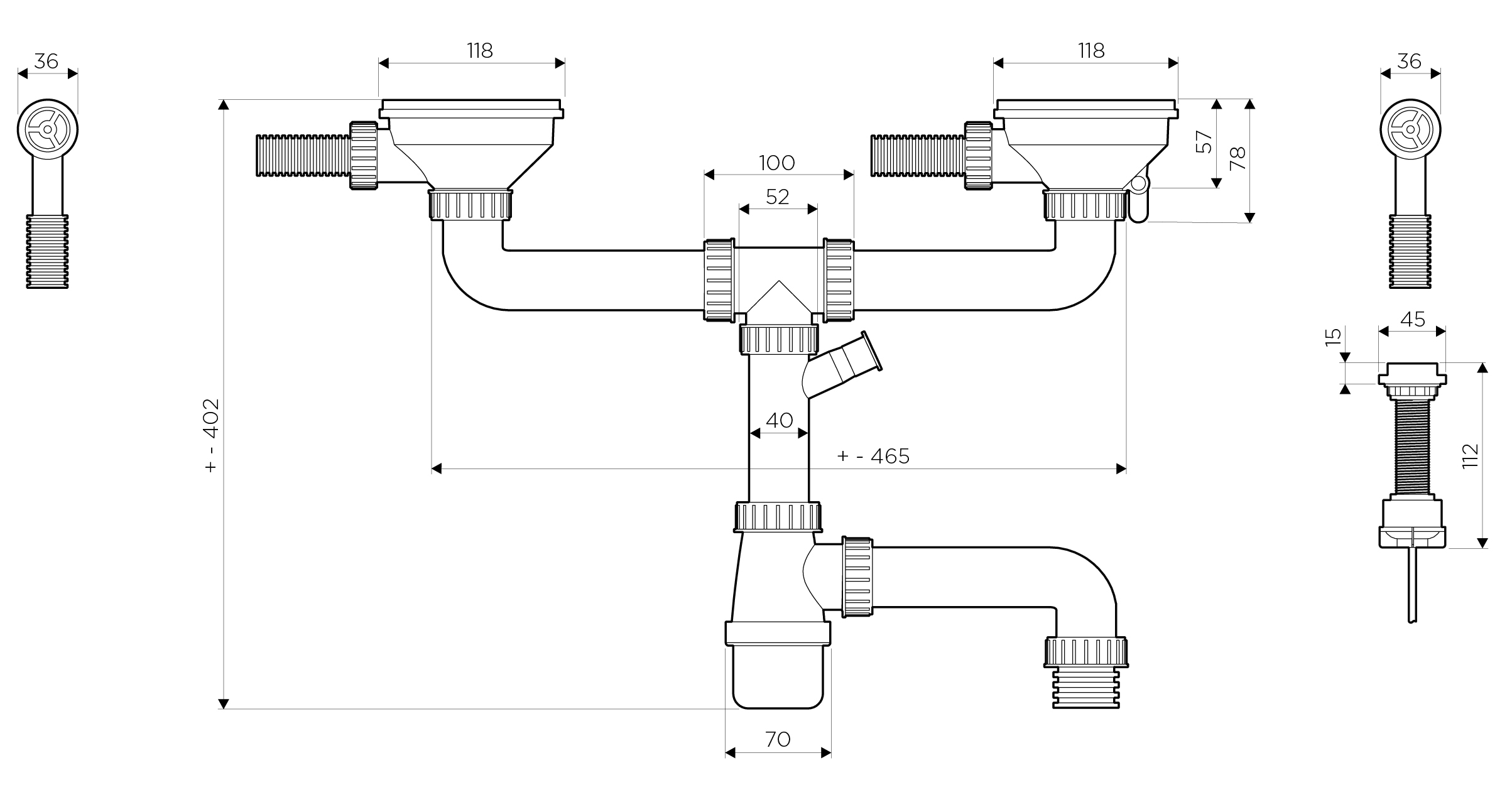 Арматура для двухчашевых моек с круглым переливом и клапаном-автоматом A-02-AB-4