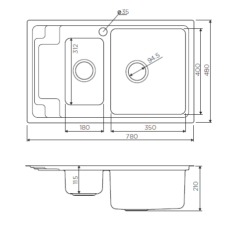 Схема встраиванияна русском языке для мойки Omoikiri MIZU 78-2 R