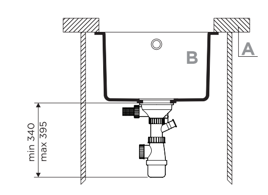 Схема встраивания 1 на русском языке для мойки Omoikiri BOSEN 38-U WH