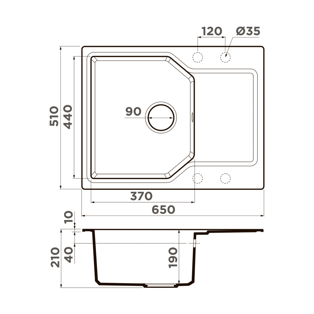 Схема встраивания на русском языке для мойки Omoikiri Yonaka-65-GR