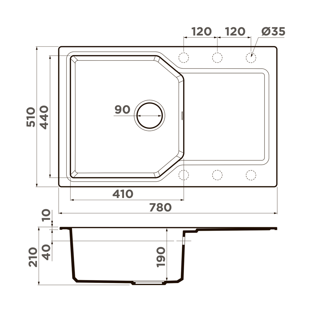 Схема встраивания на русском языке для мойки Omoikiri Yonaka-78-BE