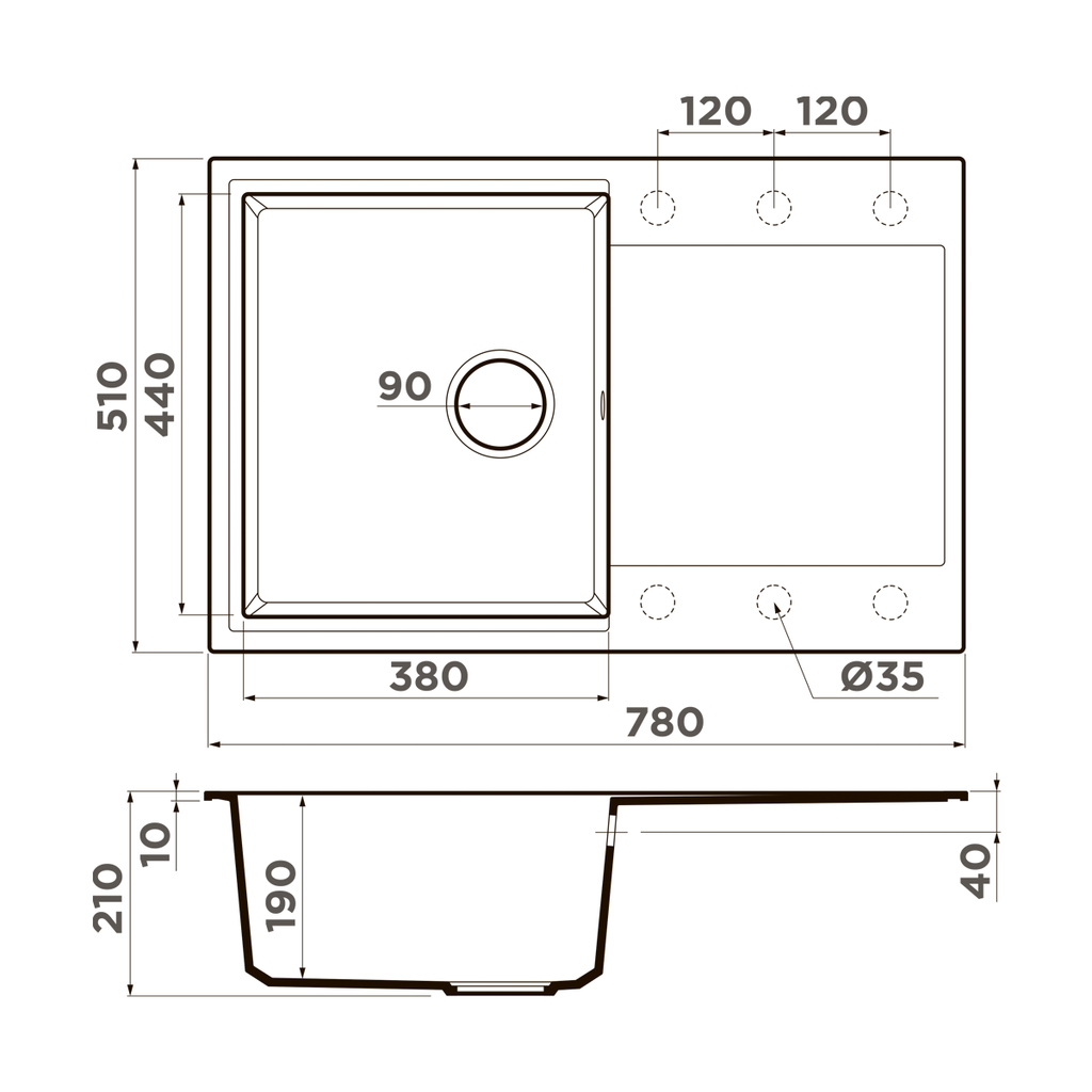 Схема встраивания на русском языке для мойки Omoikiri Daisen-78-BE