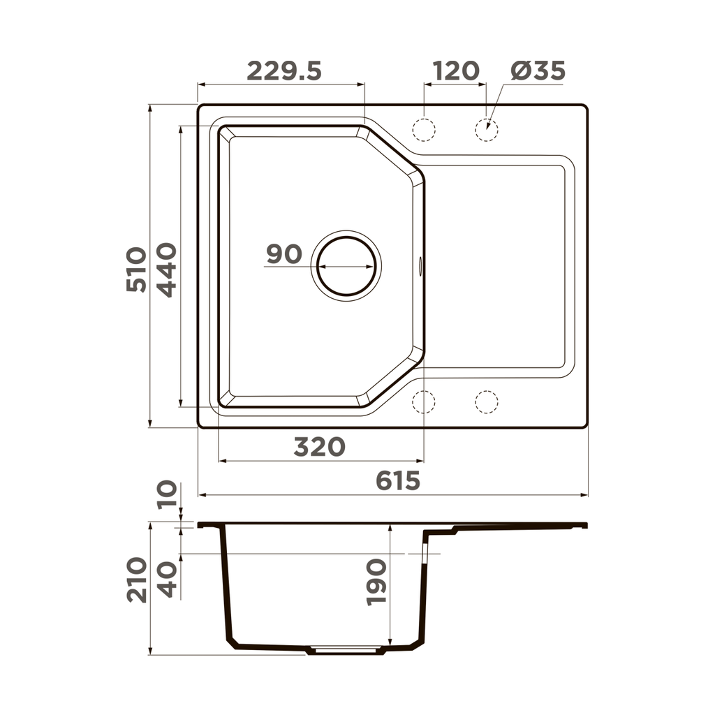 Схема встраивания на русском языке для мойки Omoikiri Yonaka 61-BE