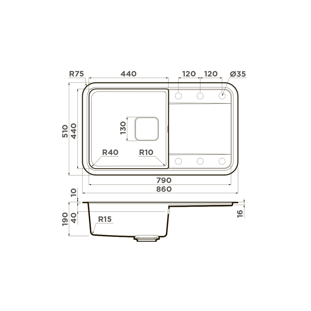 Схема встраивания на русском языке для мойки Omoikiri TASOGARE 86 CA