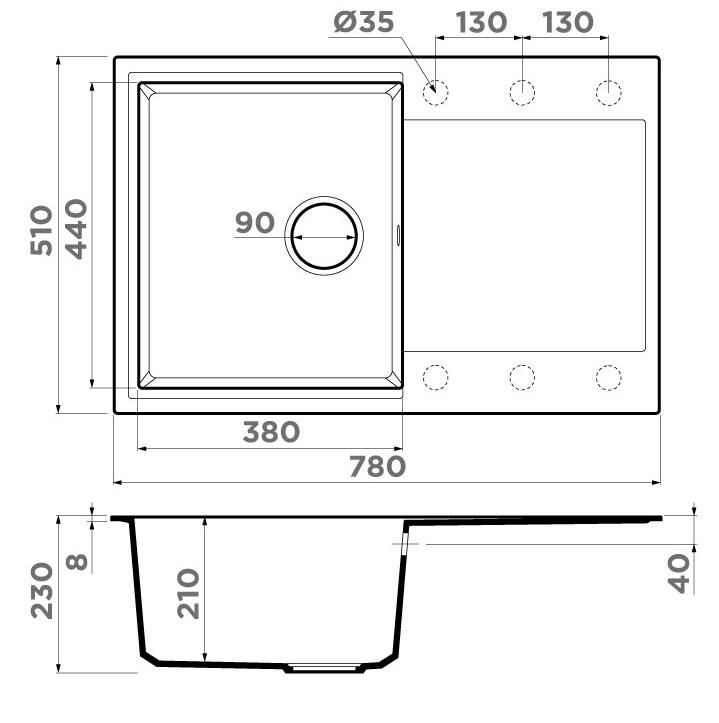 Схема встраивания на русском языке для мойки Omoikiri DAISEN 78T WH