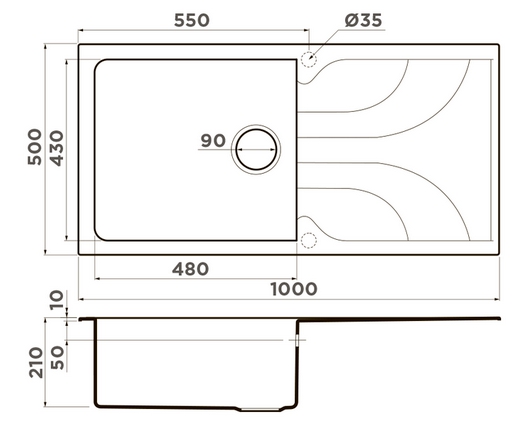 Схема встраивания на русском языке для мойки Omoikiri YASUGATA 100 DC