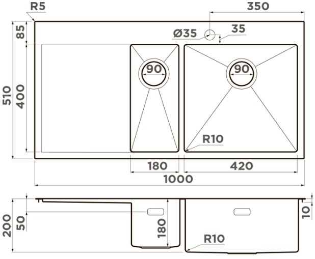 Мойка Omoikiri AKISAME 100-2 GM-R крыло слева
