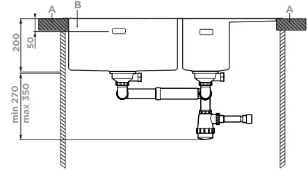 Схема встраивания 2 на русском языке для мойки Omoikiri AKISAME 100-2 GM-R крыло слева