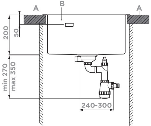 Схема встраивания 2 на русском языке для мойки Omoikiri AKISAME 59 GM Old