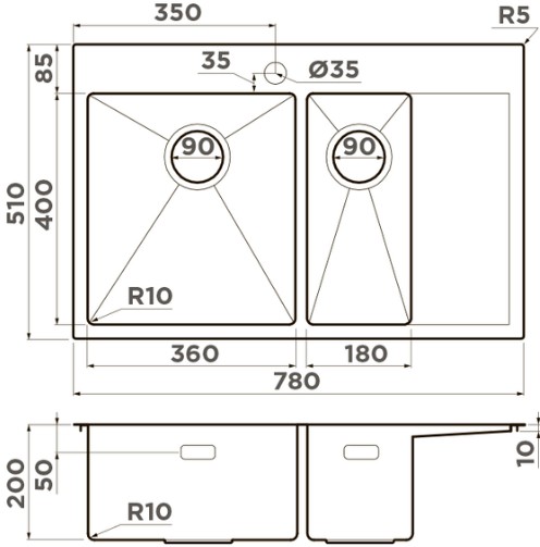 Схема встраивания 2 на русском языке для мойки Omoikiri AKISAME 78-2 GM-R крыло слева