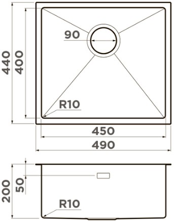 Схема встраивания 1 на русском языке для мойки Omoikiri Taki 49-U/IF-LG
