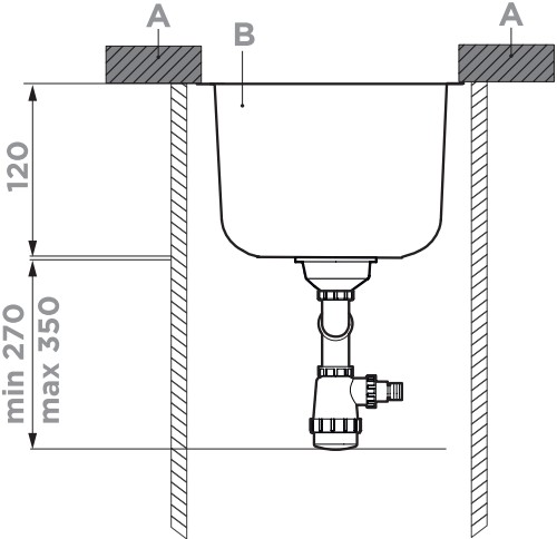 Схема встраивания 2 на русском языке для мойки Omoikiri Omi 16-U-GM