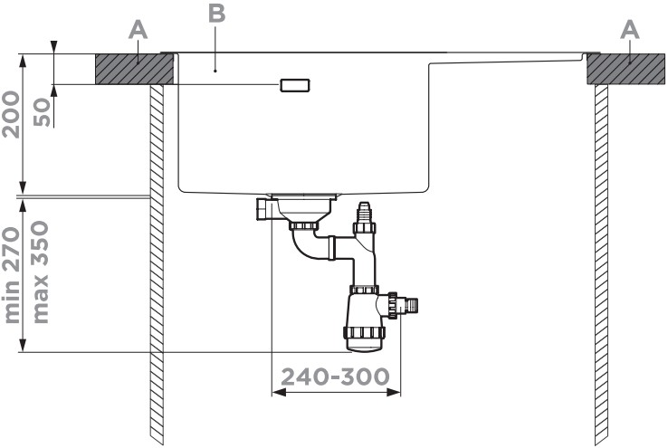 Схема встраивания 2 на русском языке для мойки Omoikiri Akisame 78 GM L