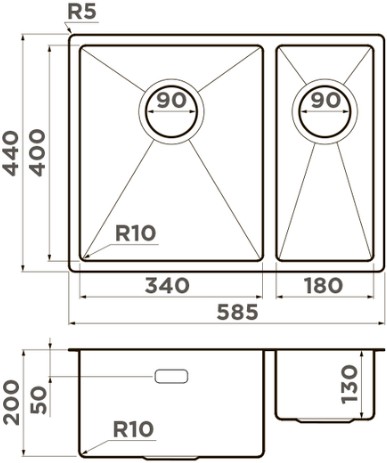 Схема встраивания на русском языке для мойки Omoikiri Taki 58-2-U/IF IN-L