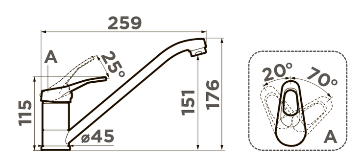 Схема встраивания на русском языке для смесителя Omoikiri Kado GR