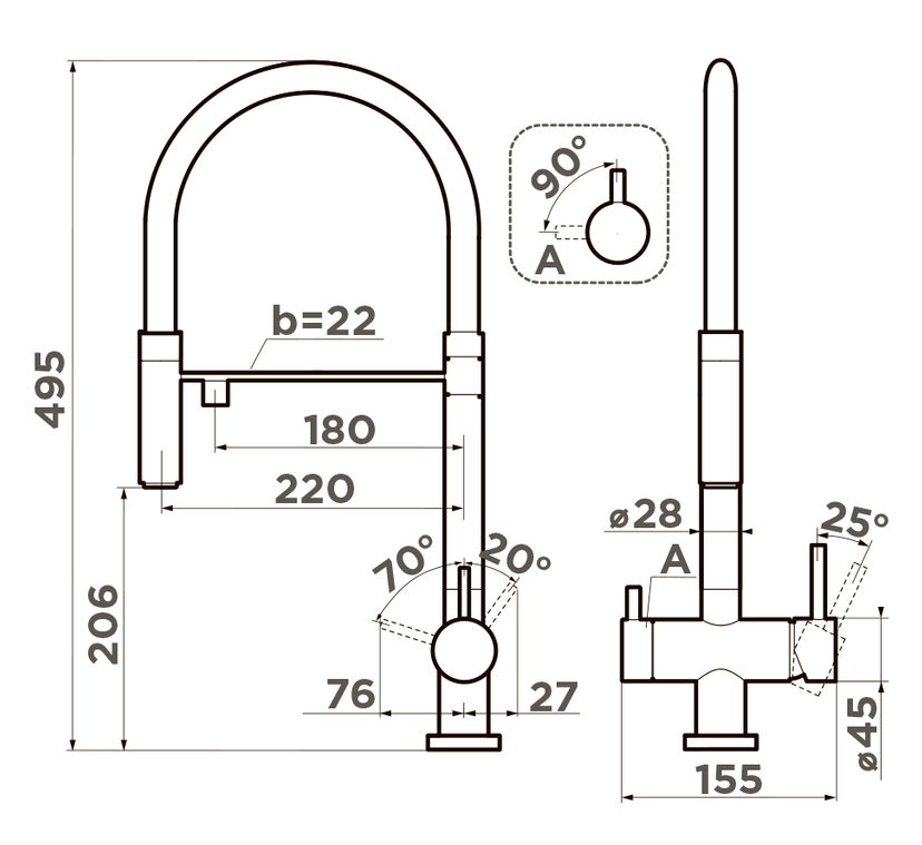 Схема встраивания на русском языке для смесителя Omoikiri KANTO C