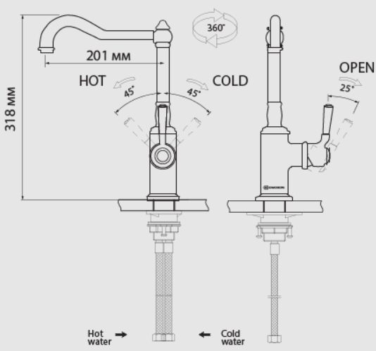 Схема встраивания на русском языке для смесителя Omoikiri KASHIWA C