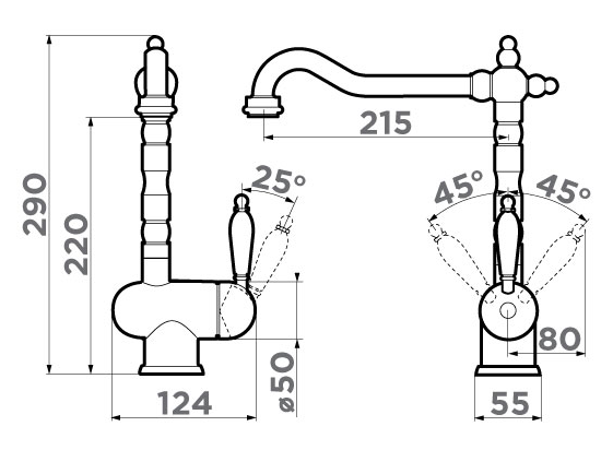 Схема встраивания на русском языке для смесителя Omoikiri KYOTO O