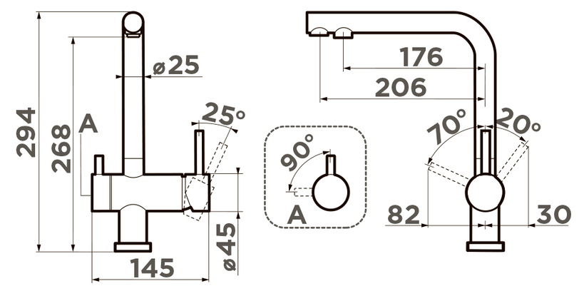 Схема встраивания на русском языке для смесителя Omoikiri NAGANO PL
