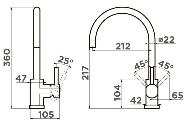Схема встраивания на русском языке для смесителя Omoikiri WAKAYAMA C
