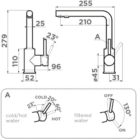 Схема встраивания на русском языке для смесителя Omoikiri NAKAGAWA 2 PLUS BL