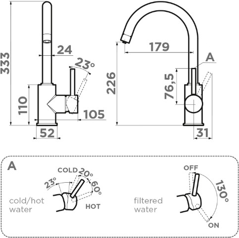 Схема встраивания на русском языке для смесителя Omoikiri Shinagawa 2 PLUS WH